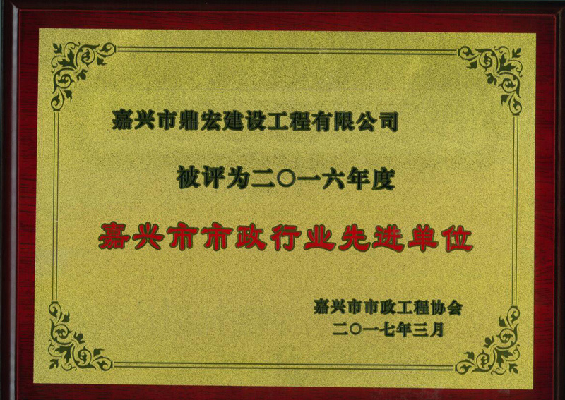 2016年度嘉興市市政行業(yè)先進(jìn)單位