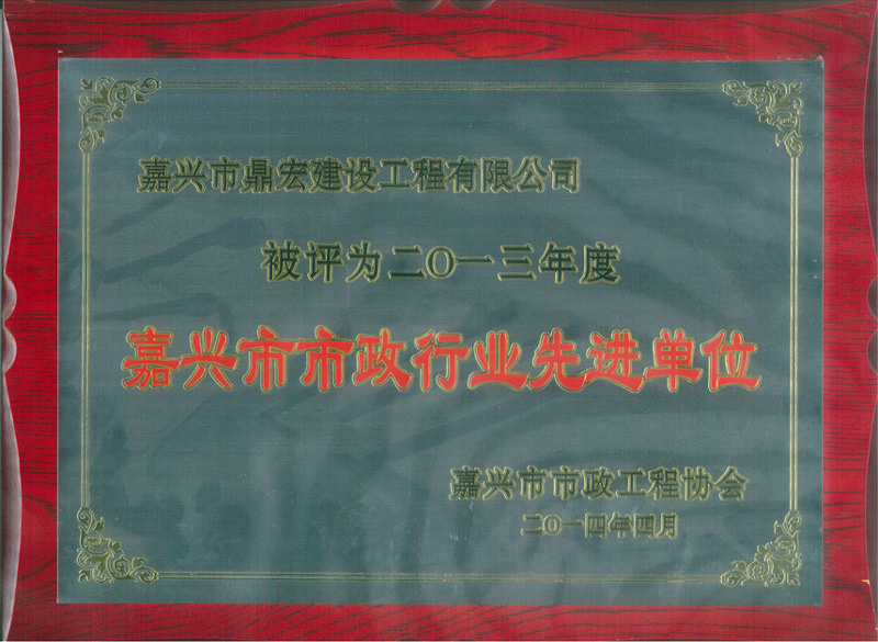 2013年度嘉興市市政行業(yè)先進(jìn)單位