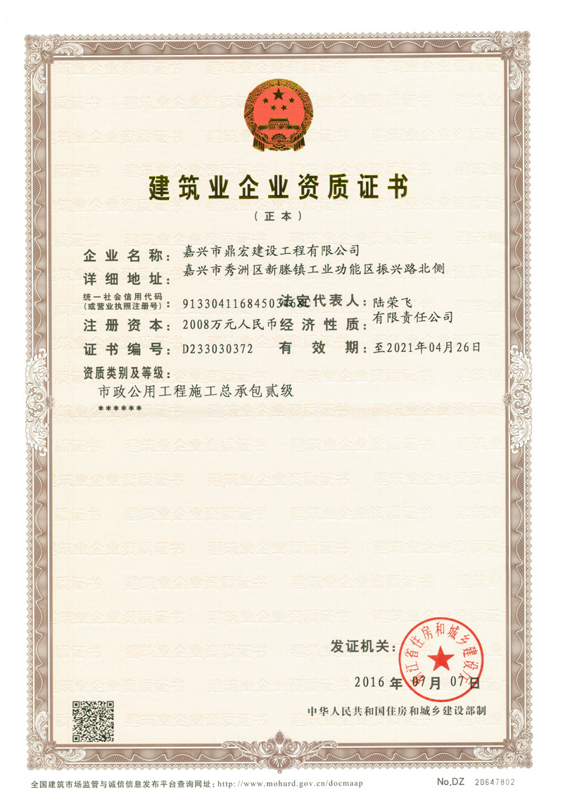 市政工程施工總承包貳級(jí)