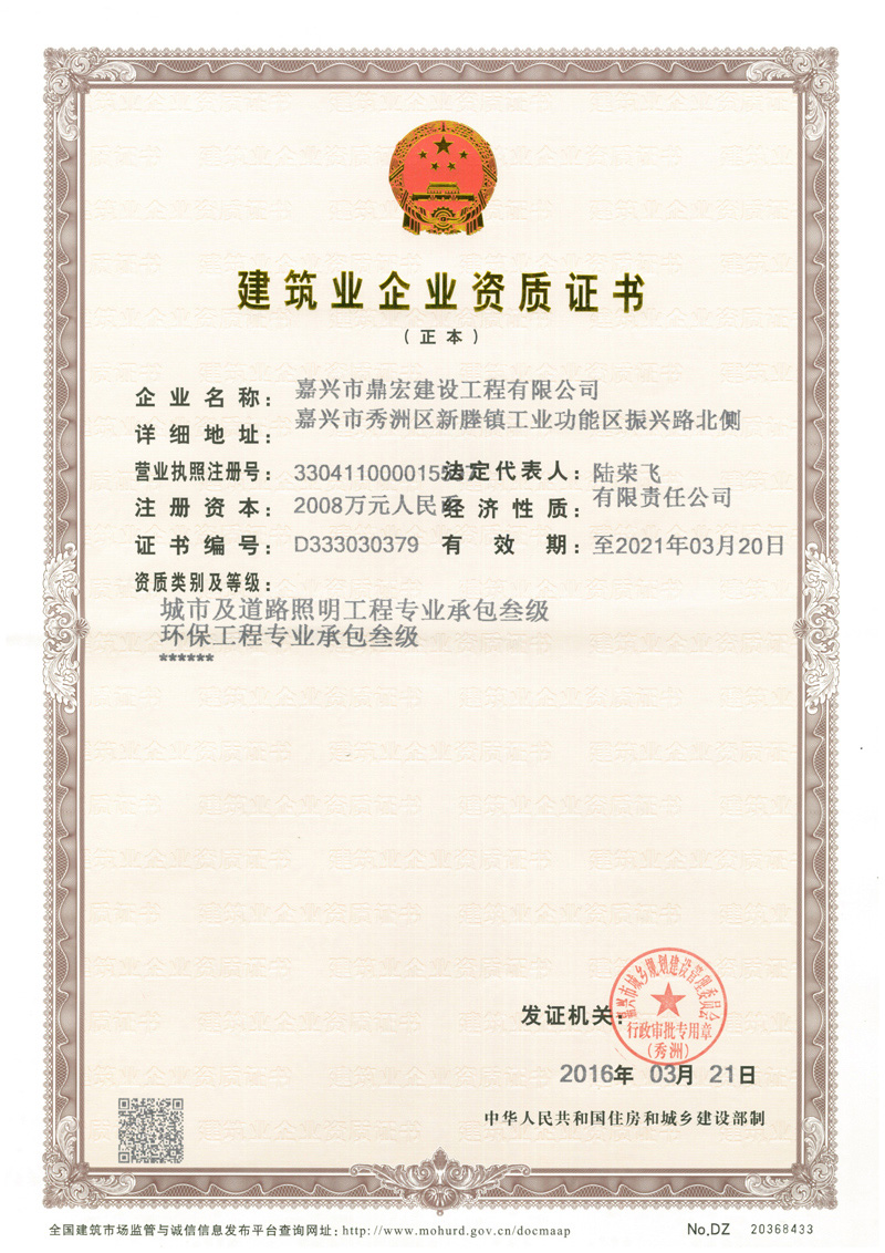 城市道路照明及環(huán)保工程承包叁級(jí)